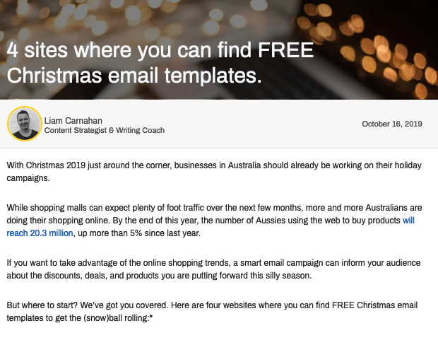 For example, take a look at how we used the keywords ‘Christmas email templates’ in this article. We’ve included the keyword in the headline, as well as within the post.