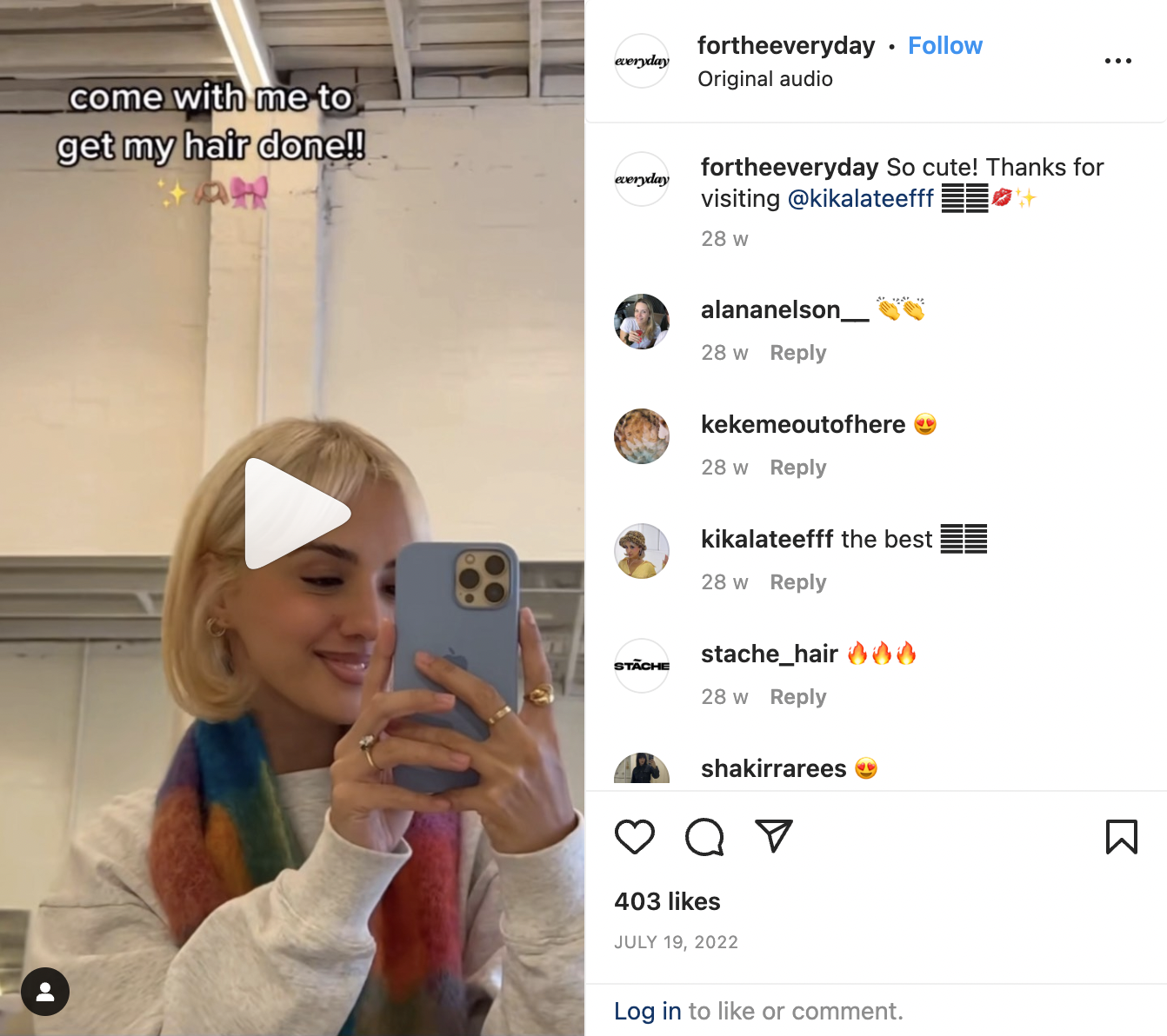 The authentic nature of a UGC video can significantly enhance viewer engagement and trust. Everyday Salon is a Melbourne-based hairdresser that reposts videos created by their customers to their Instagram feed. The video shared by one customer gives an insight into the best bits of going to visit this particular salon, selling the overall experience as a ‘pick me up’. This content works as a ‘free’ form of advertising, encouraging other followers to get their hair done too.