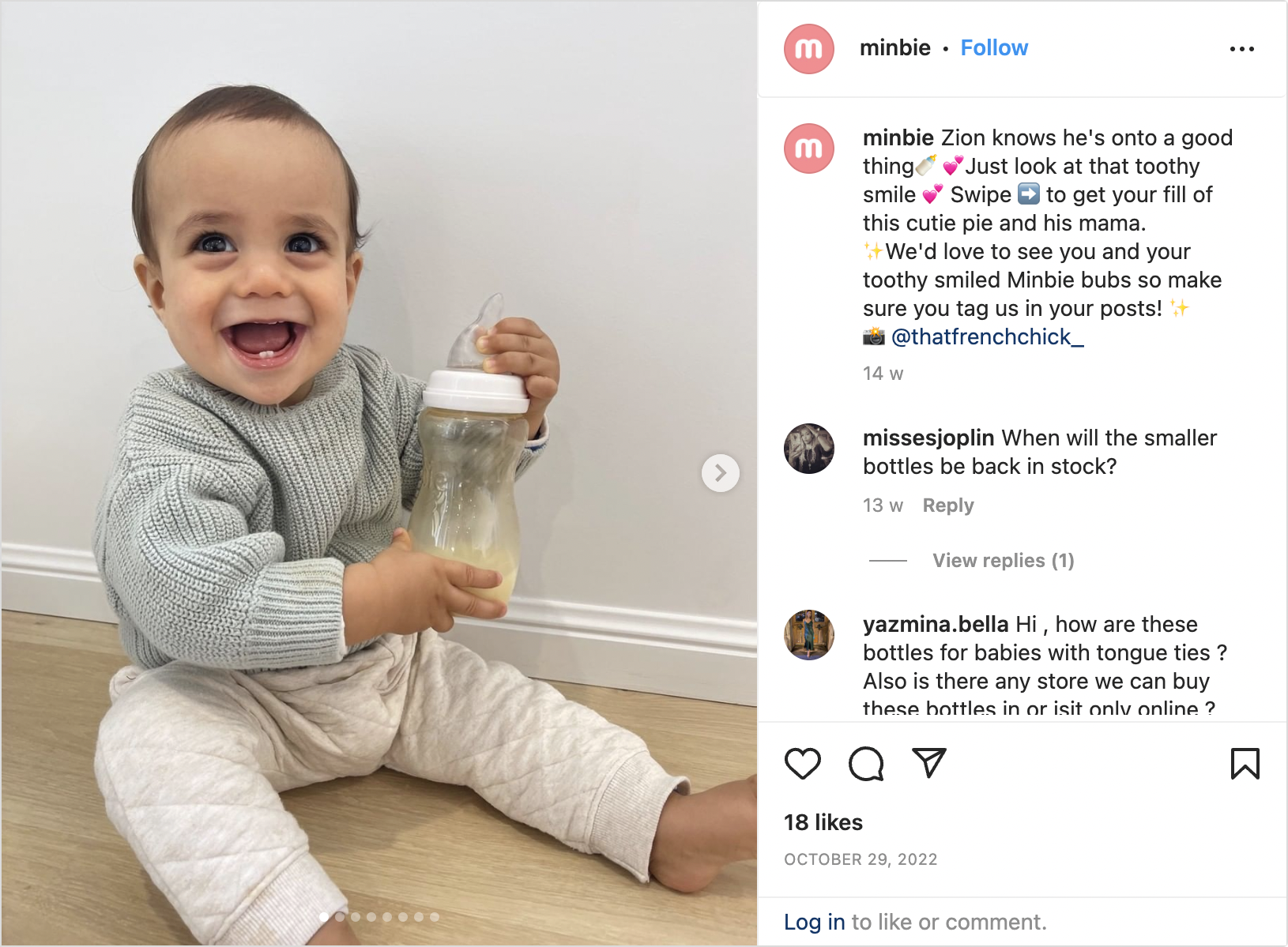 UGC content creators often excel in producing visually appealing images that resonate with audiences. Minbie, an Australian baby product brand, repackages pictures that mums share of their babies enjoying Minbie products online and reposts them to their social feed. What’s great about Minbie’s posts is that they create excitement around receiving customer images, encouraging users to take content and share it with the chance to ‘get featured’ on their Instagram profile.
