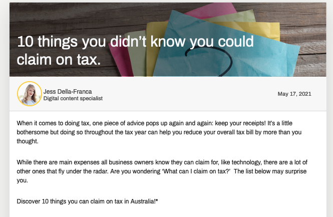 Take a look at this SEO campaign Yellow Pages ran in May 2021. In addition to regular website content, we created a series of blog posts to offer relevant content for those searching for information about the end of the financial year.